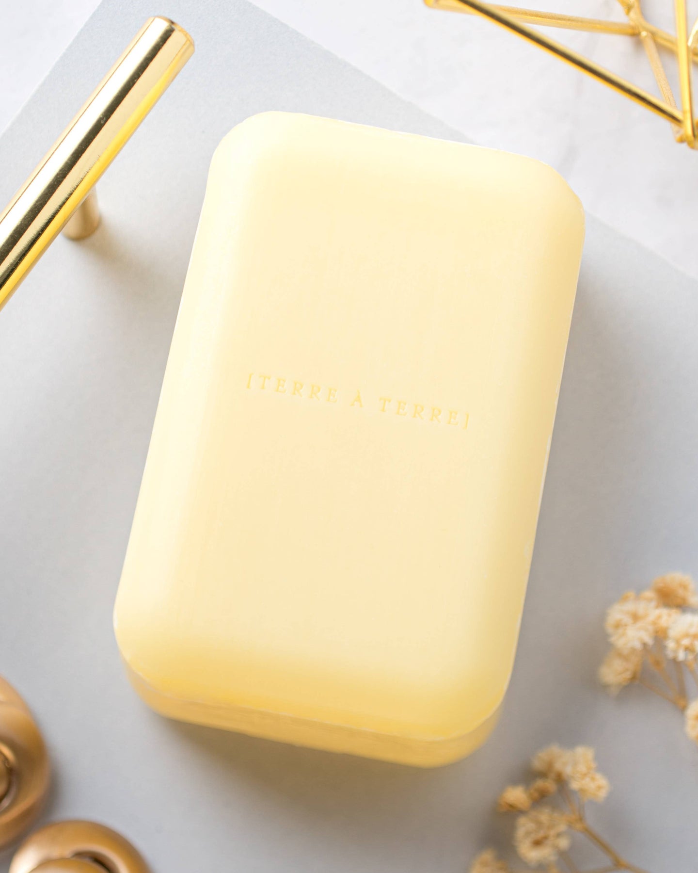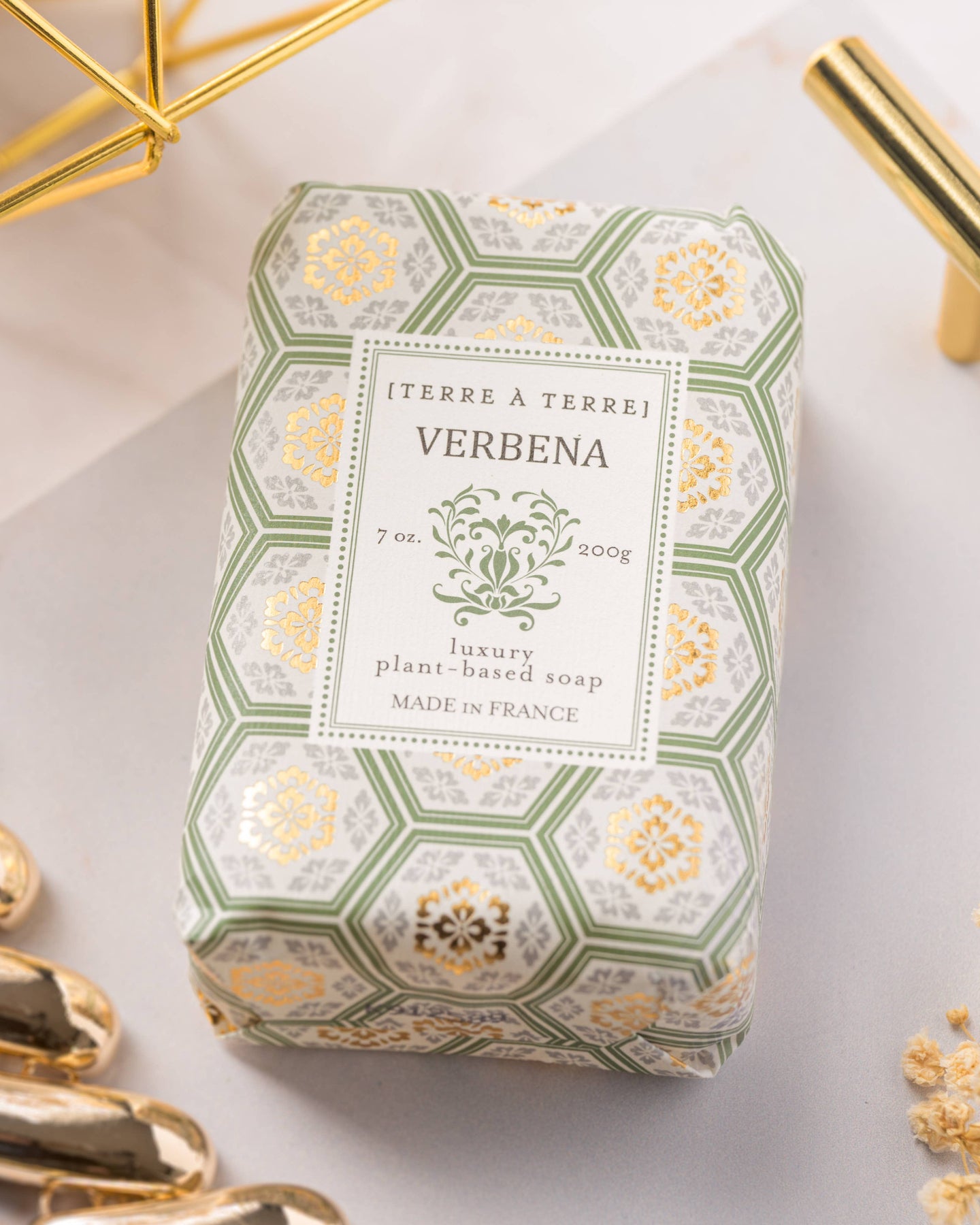 Wrapped in signature textile-inspired paper, this luxurious French soap makes every wash feel like a self-care ritual. With a refreshing lemon verbena scent, this plant-based bar is enriched with organic shea butter and sustainably sourced palm oil to leave skin soft, clean, and hydrated.