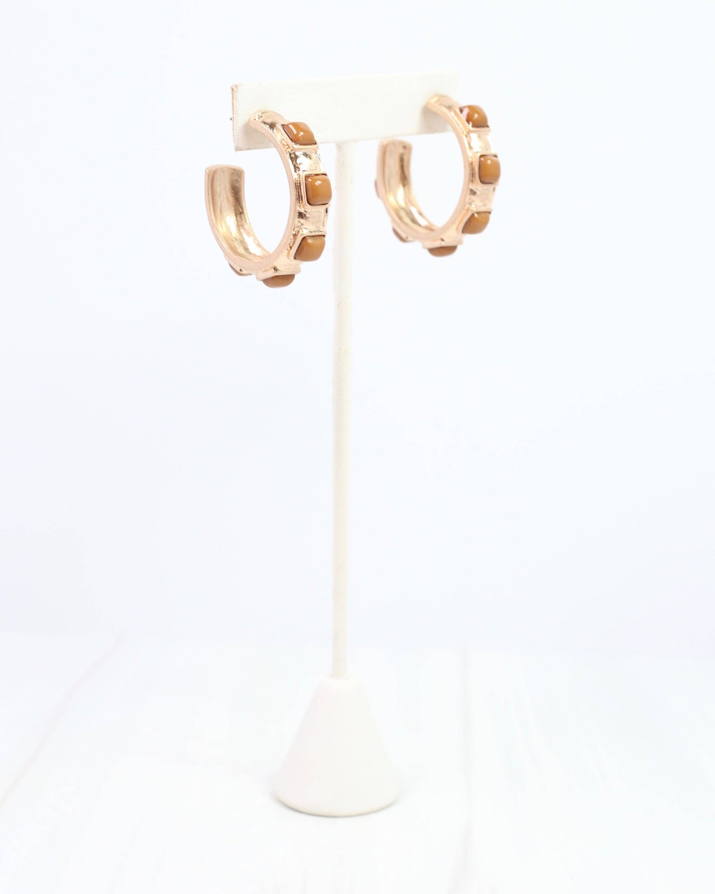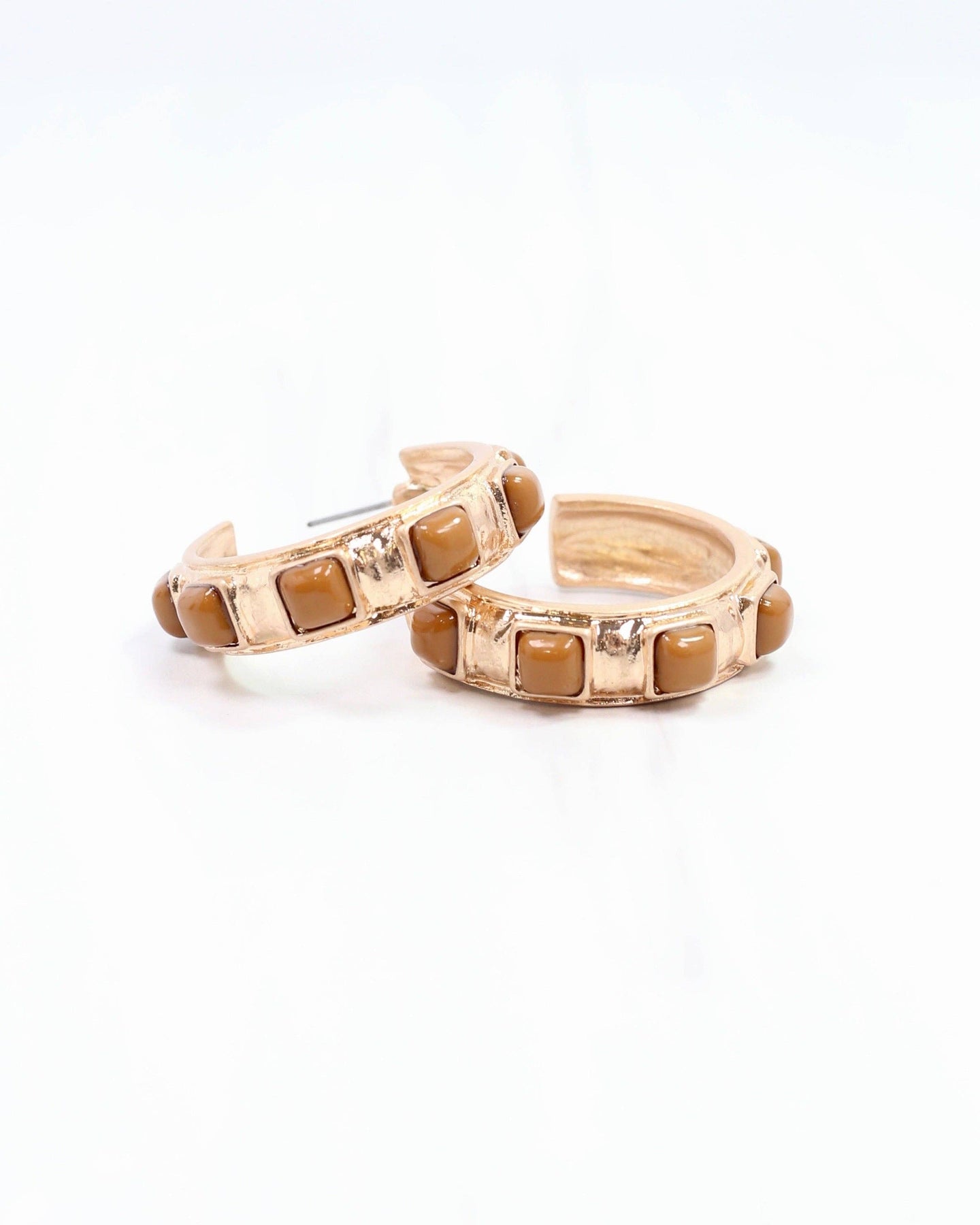 The Allie Earrings are where modern meets vintage. With hammered gold finishes and square taupe accents, these beauties make a subtle statement while adding warmth and elegance to any look. Wear them with knits, denim, or dressier layers—they’re as flexible as they are fabulous.