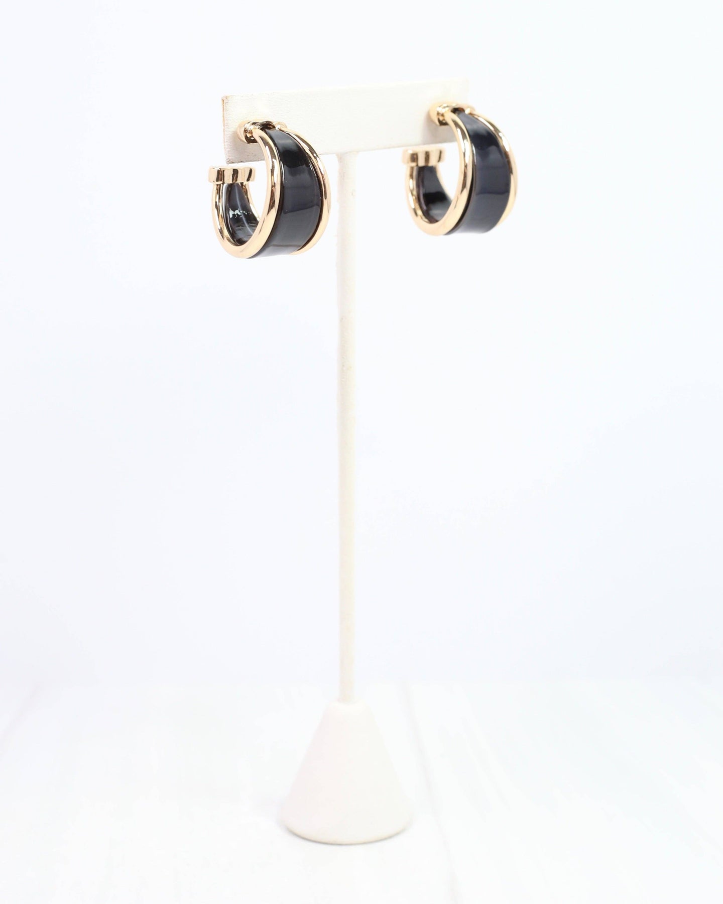 Versatile and bold, the Daphne Gold Trimmed Hoop Earrings in black are made to match your fall wardrobe. With glossy black acetate framed in gold, these lightweight hoops add just the right pop of polish to both casual and dressed-up looks.