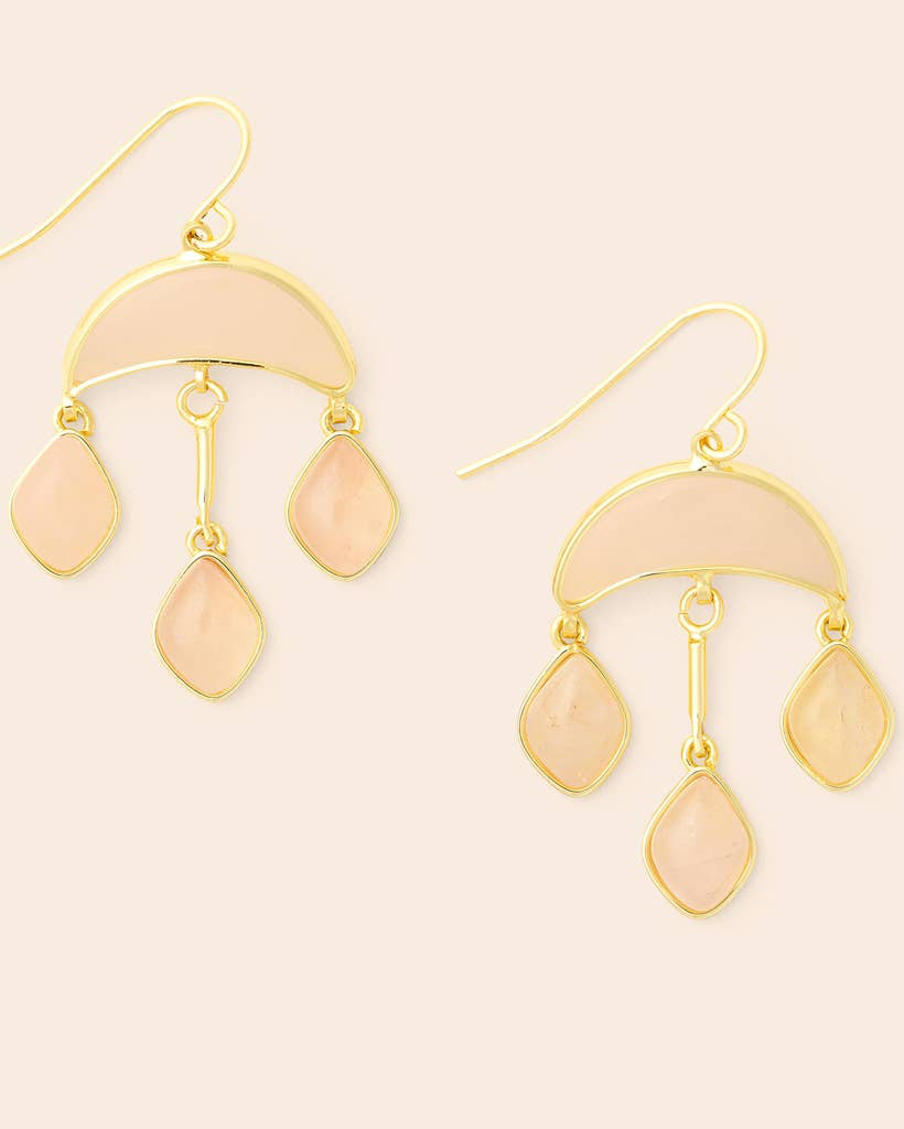 Bring a touch of love and light to your everyday look with our crescent-shaped Rose Quartz drop earrings. This minimal, modern pair features a 1" drop and soft curves for effortless styling. Rose Quartz is known as the Stone of the Heart, offering compassion, healing, and emotional balance.