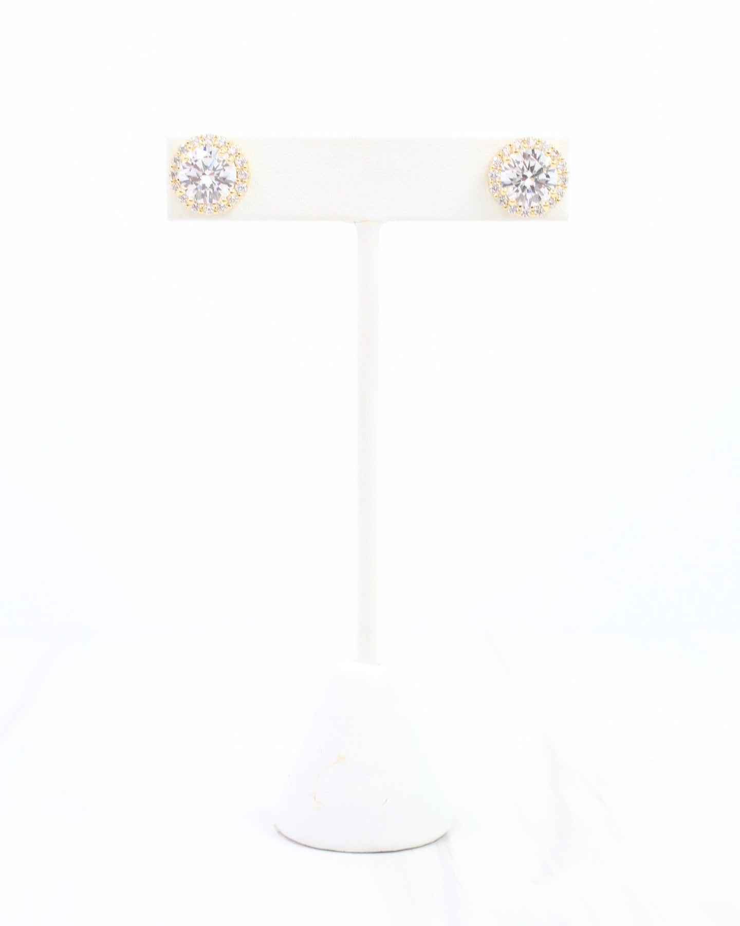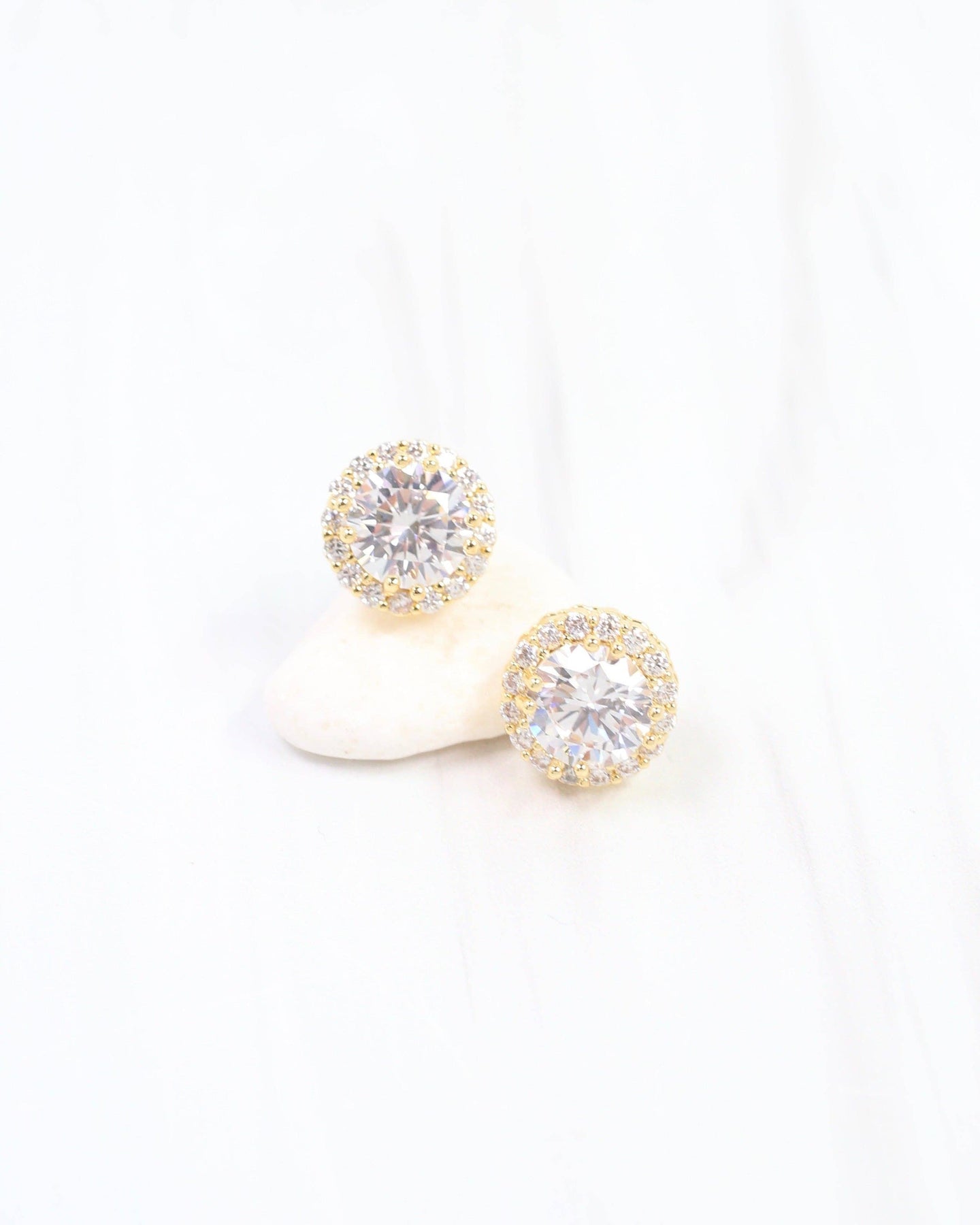 Add a sparkly twist to your look with the Winslow CZ Stud Earrings. A radiant center stone is surrounded by a glittering halo of crystals, all set in gleaming gold for a luxe finish. Dainty yet dazzling, they’re the perfect balance of glam and grace.
