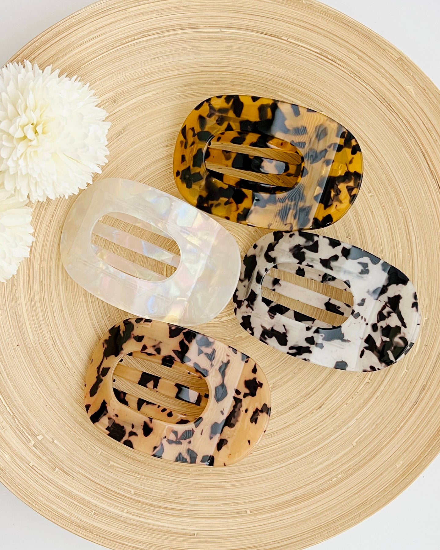 Your everyday go-to just got a glow-up. This Large Flat Claw Clip in brown tortoise brings warm, vintage-inspired charm to your hair routine. Designed for all-day comfort with a flat-back silhouette that won’t dig into your scalp, it's perfect for thick strands and quick styling on the fly.