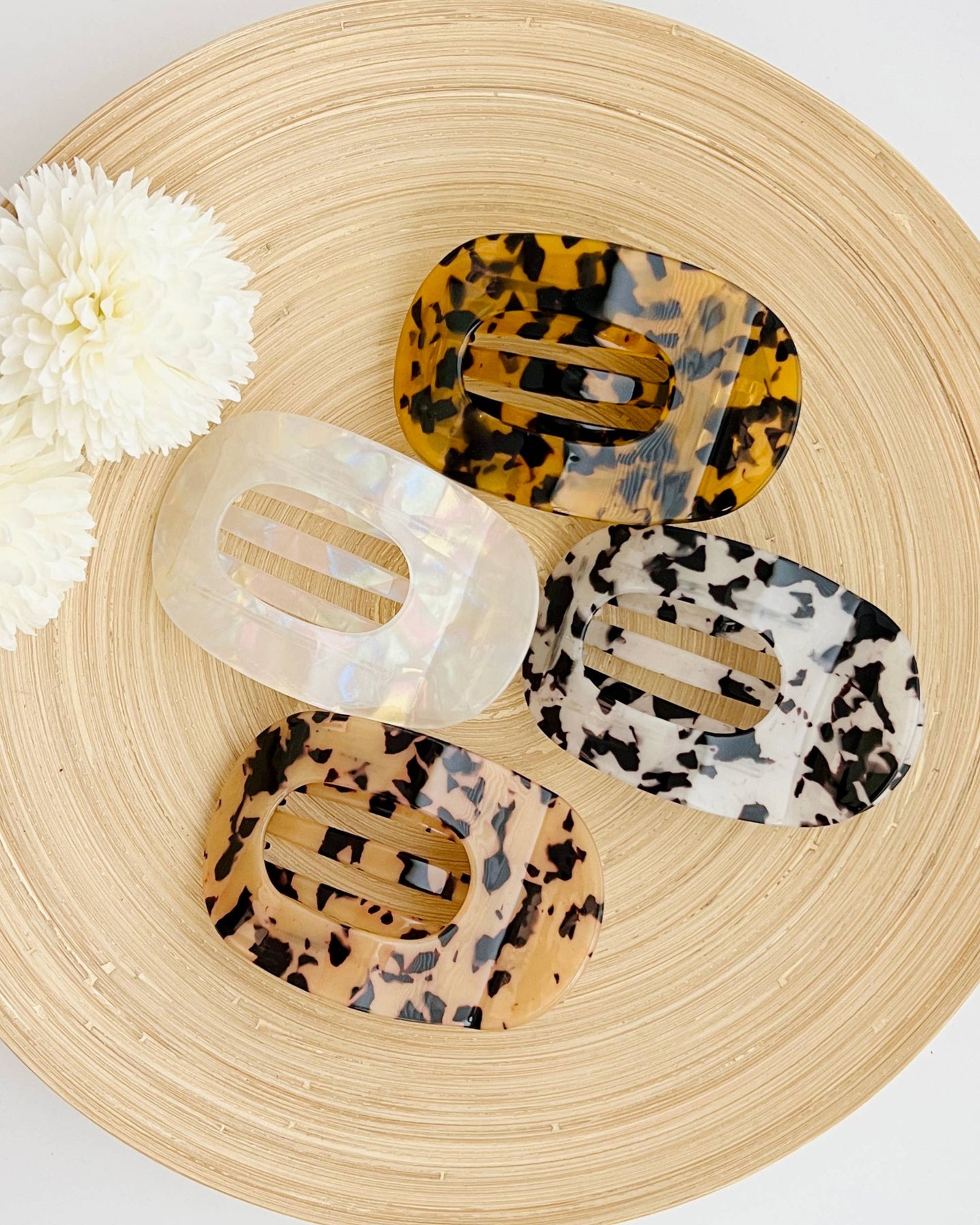 Meet the clip that’s giving major style energy. Our Big Clip Energy Flat Hair Claw in iridescent white is the ultimate blend of fashion and function. The oversized 5" flat shape makes it comfy for car rides (no headrest drama here), while the soft, pearlescent finish brings a dreamy vintage-boho vibe to any look. It’s a must-have for thick hair, messy buns, or just keeping it chic and simple.