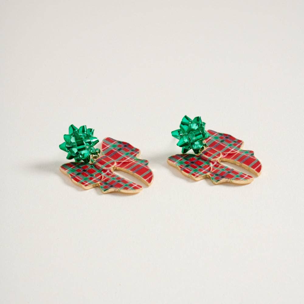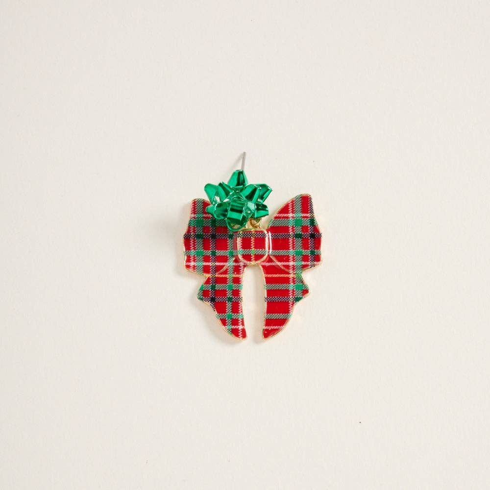 A perfect blend of red and green plaid makes these cheerful bow earrings a go-to for the holiday season.