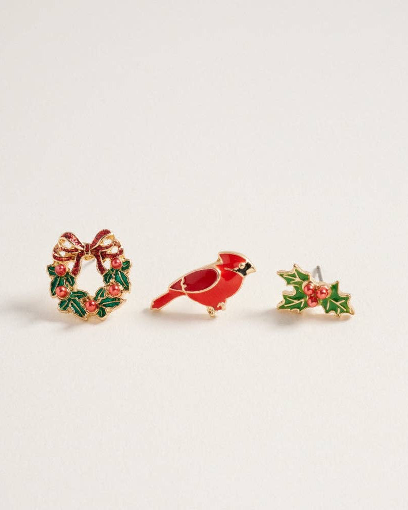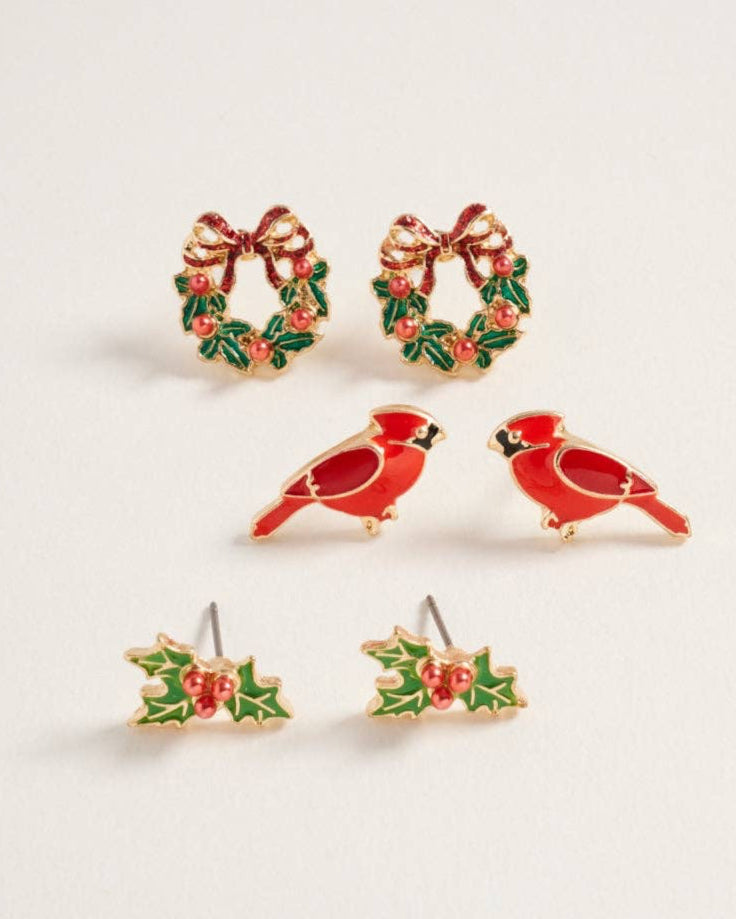 Celebrate the season with a mix of nature-inspired icons in this charming Christmas earring set. Sweet, simple, and perfect for gifting.