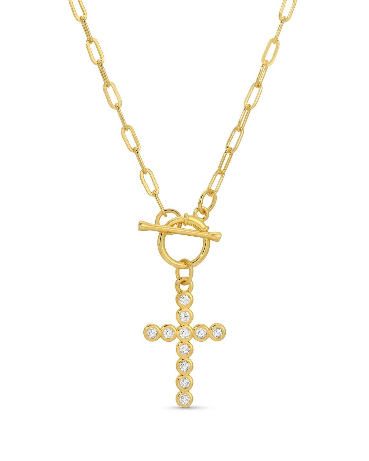 Sparkle Cross Toggle Necklace - Gold