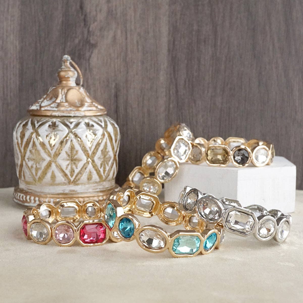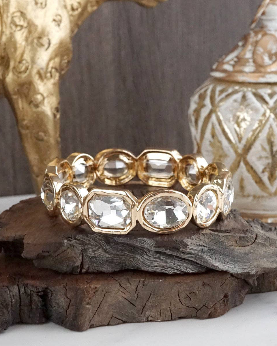This clear gem bangle brings a luxe pop of shine to your holiday stack, dressy looks, or everyday glam.