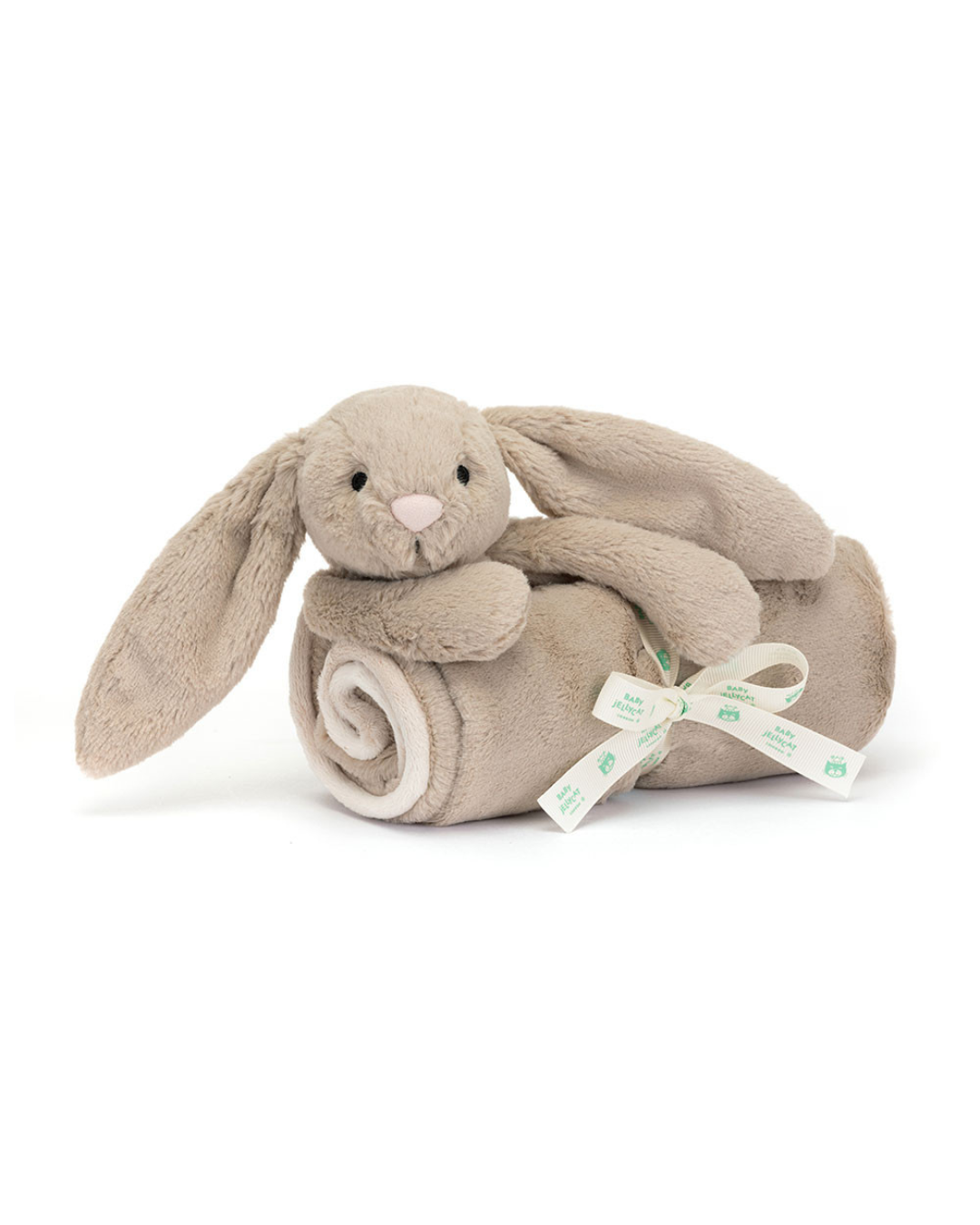 The Bashful Beige Bunny Blankie combines our most loved Bashful Bunny character’s long lop ears, pink suedette nose, embroidery eyes and soft squashy paws with a blankie made from the same cloud soft, beige coloured fur in recycled fibres. Neatly rolled and tied with a Baby Jellycat grosgrain ribbon, this is an exquisite gift of endless comfort and timeless charm.