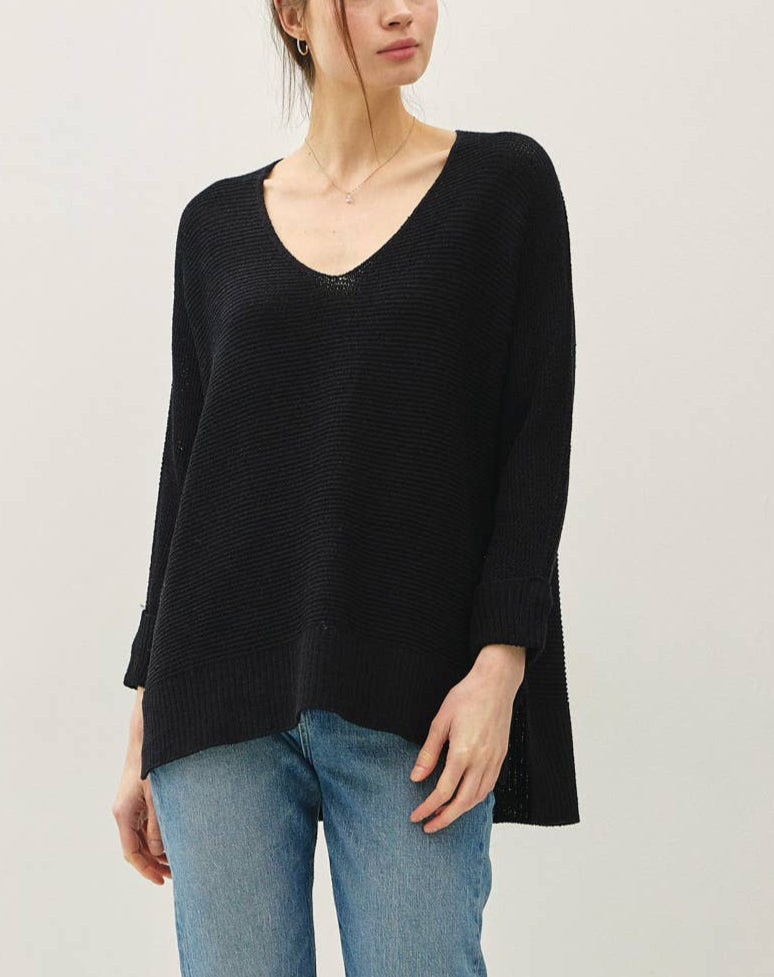 A wardrobe essential with a relaxed twist, this slouchy black sweater is endlessly versatile and made for repeat wear.
