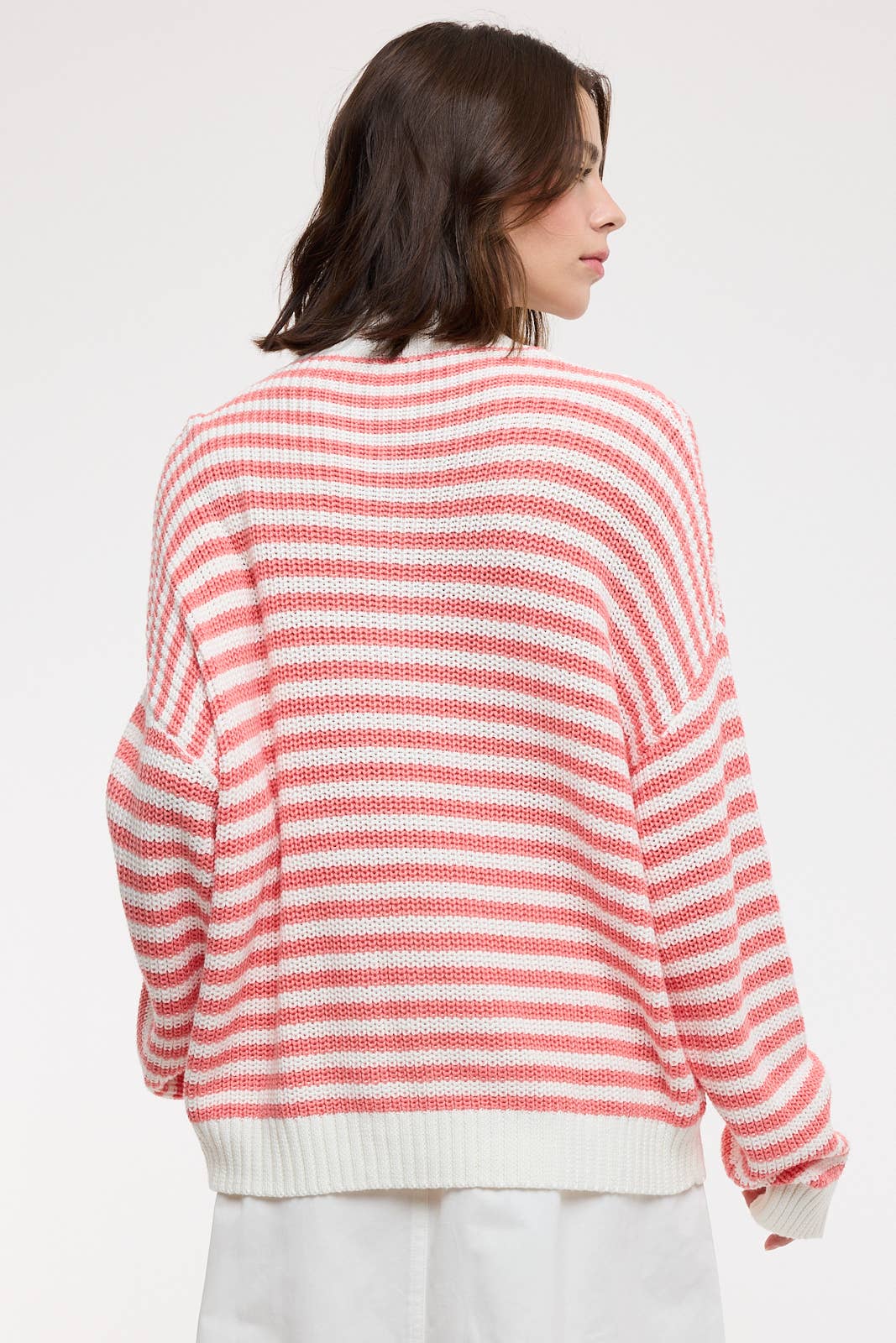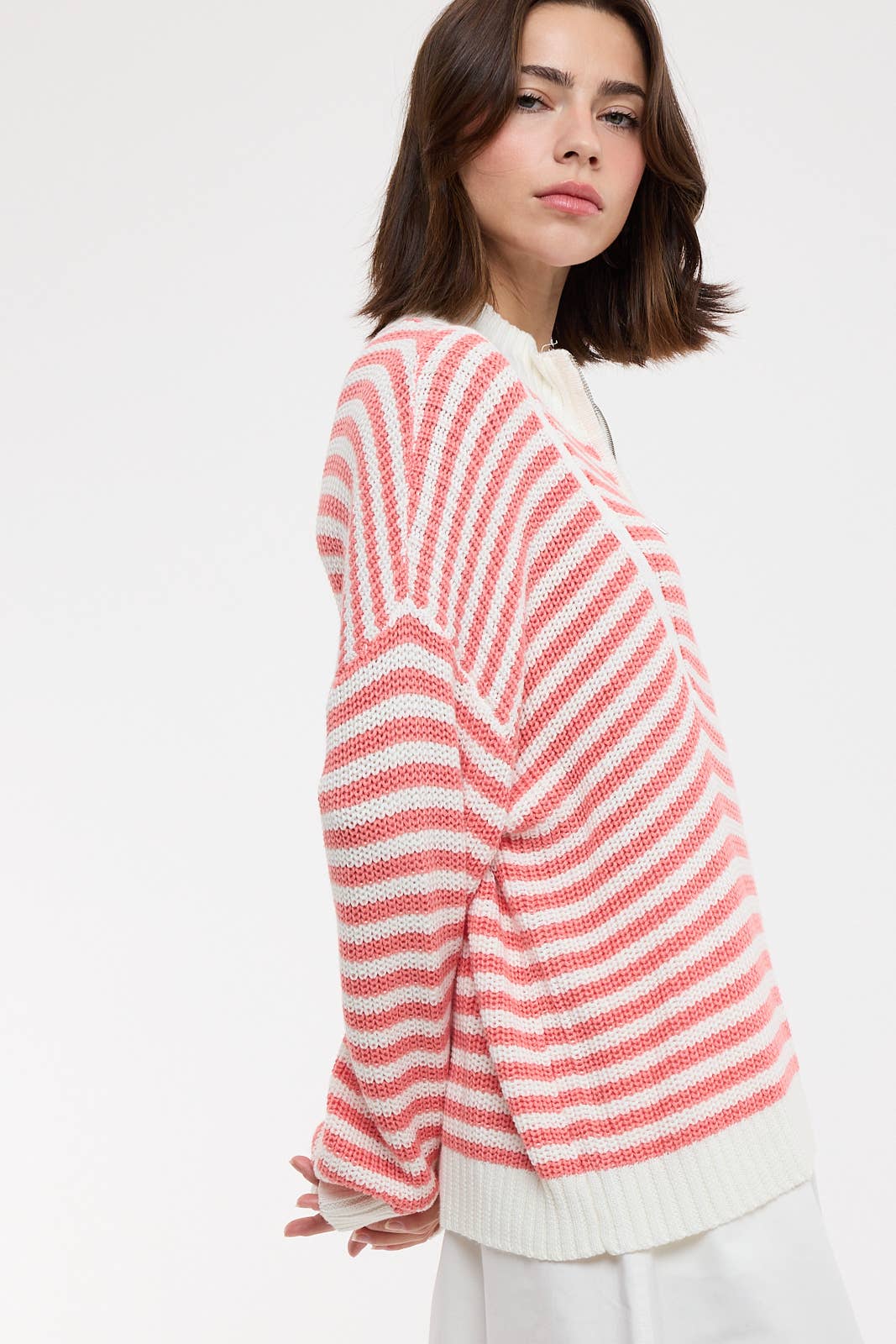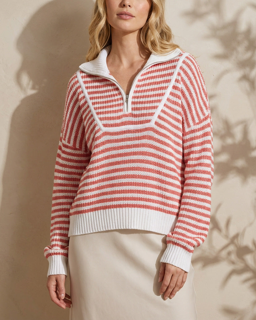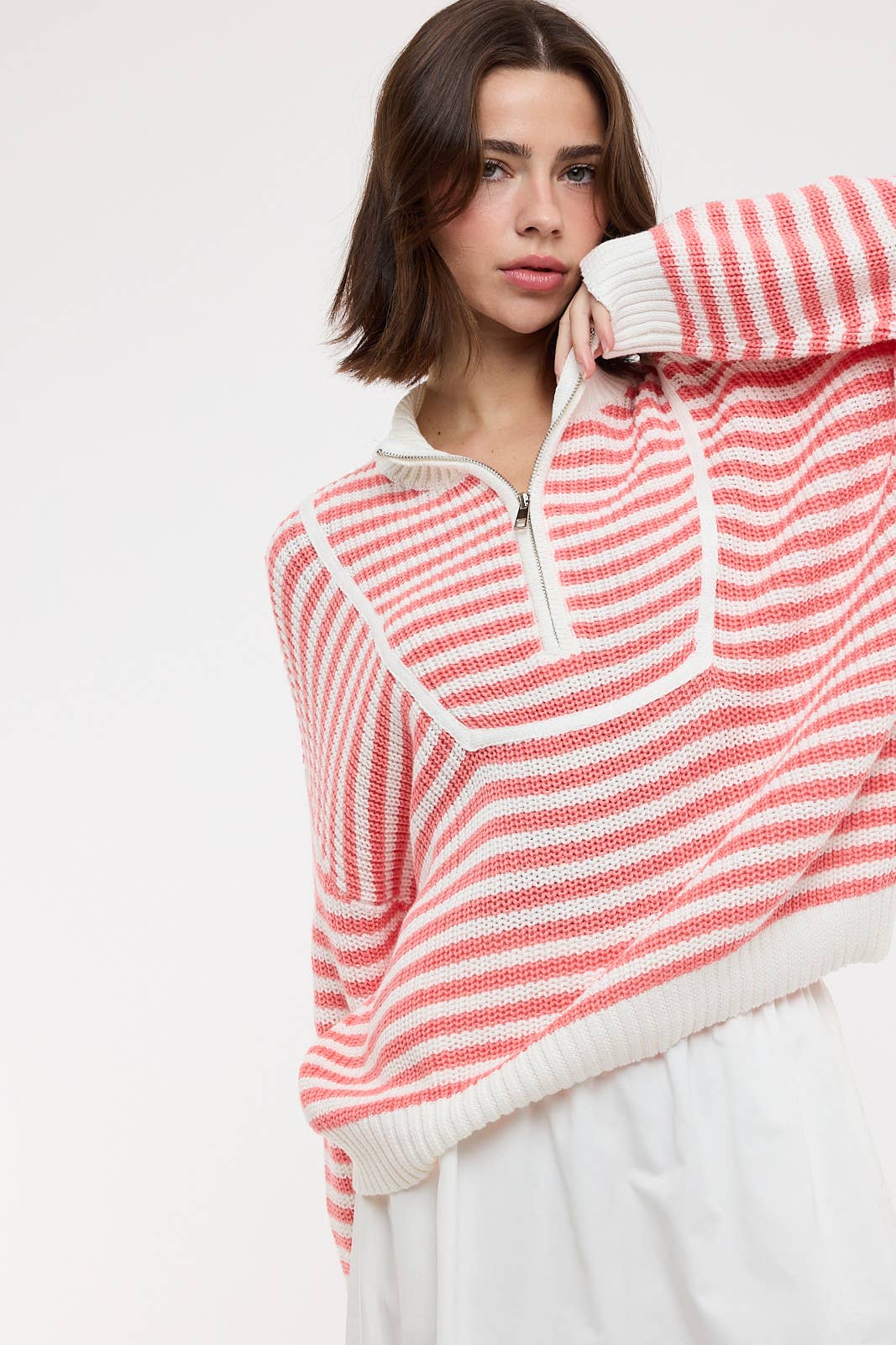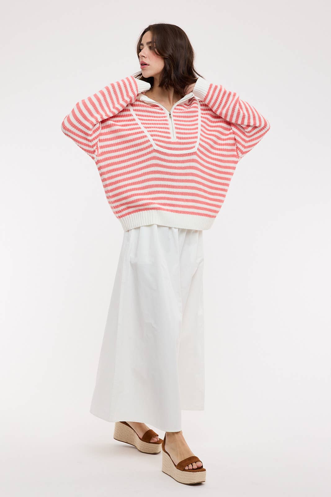 Sporty meets stylish in the Sophia Striped Half-Zip Sweater, designed for relaxed comfort with a polished edge. Featuring soft stripes and a versatile half-zip neckline, this sweater is easy to wear zipped up or open for a laid-back look. The relaxed fit makes it a natural match for jeans, skirts, or leggings.