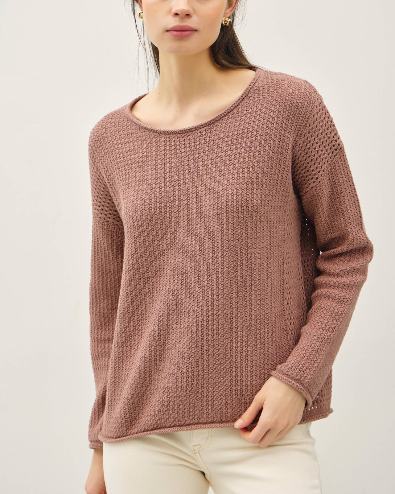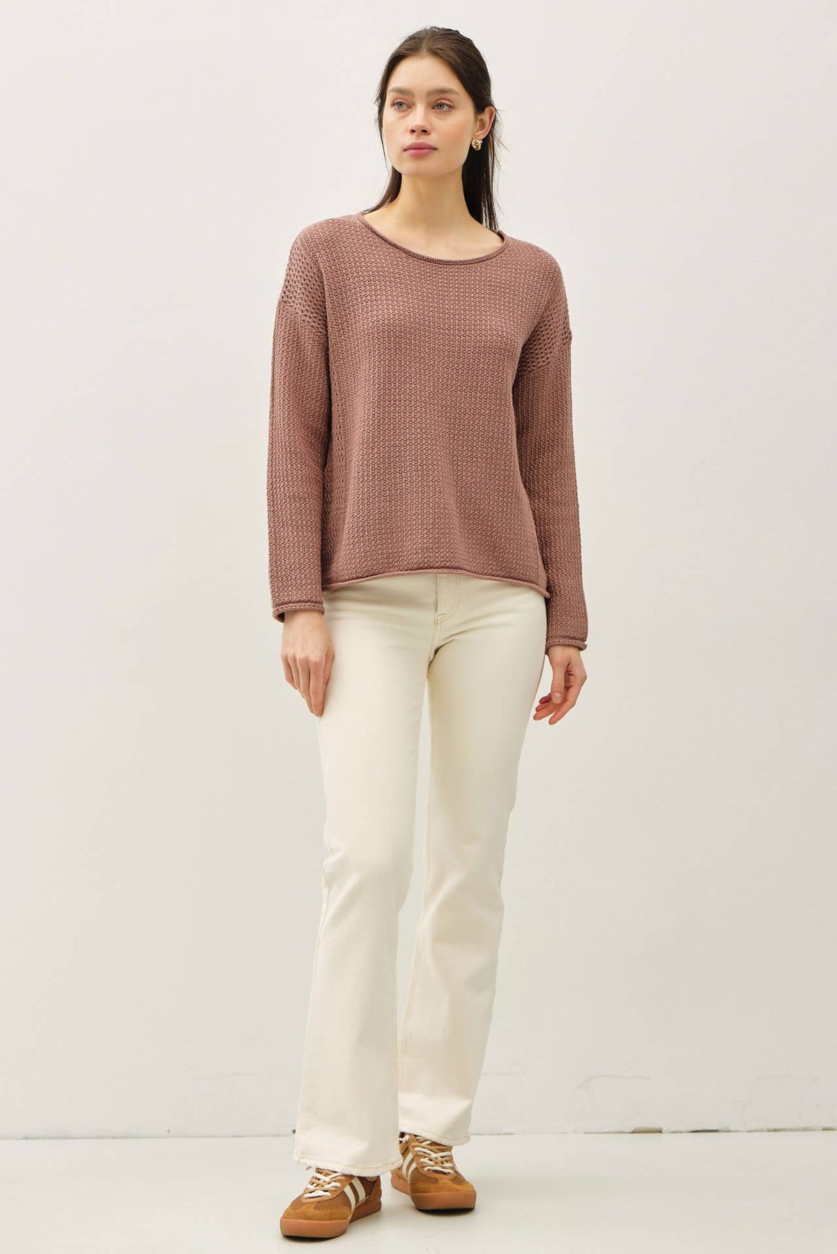 In a rich Nutella hue, this waffle knit sweater brings all the cozy comfort you crave with a relaxed silhouette that works from weekend errands to slow mornings in.