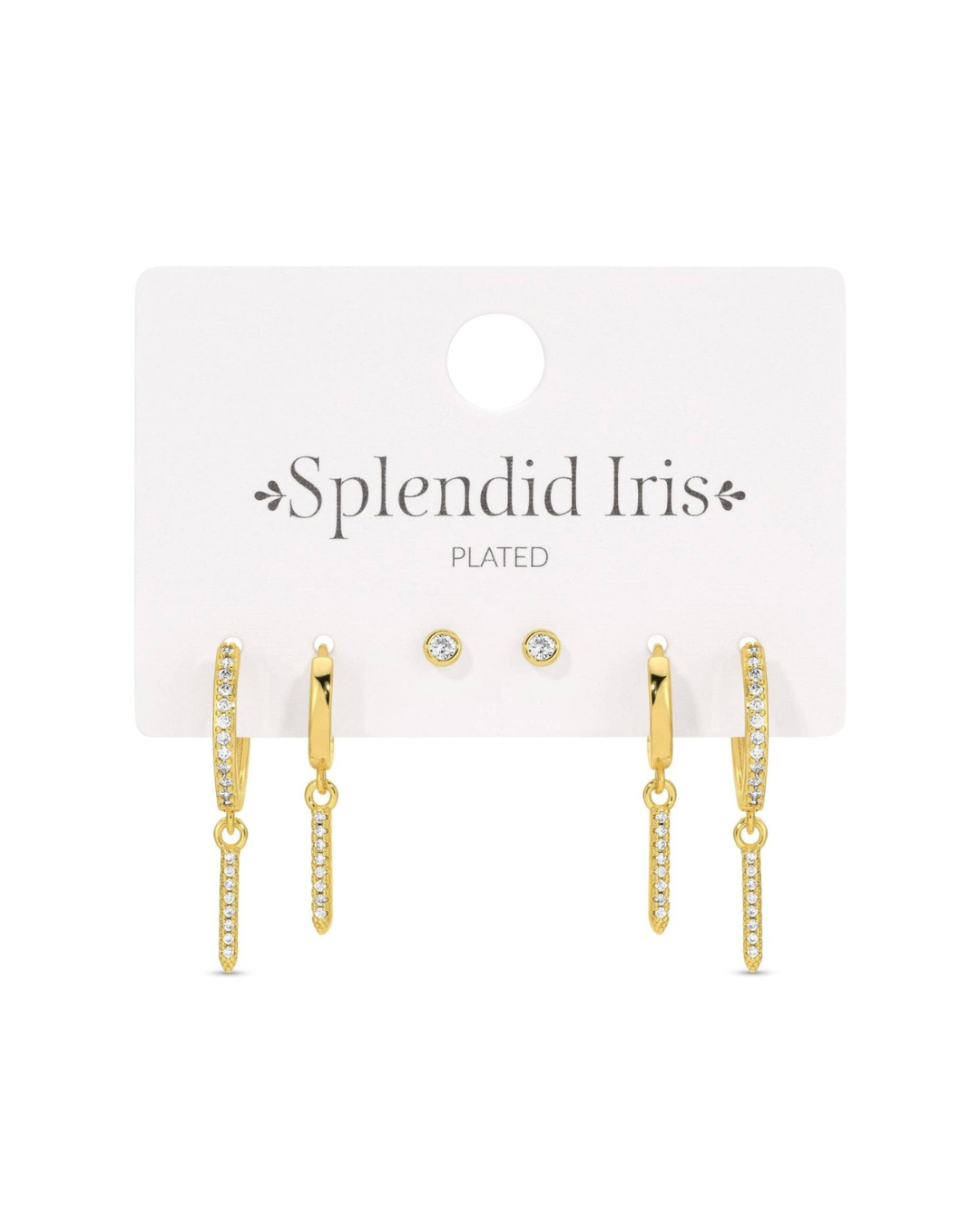 Curated for the multi-pierced, this earring trio makes styling effortless. Featuring pave huggies with a CZ bar, simple huggies with CZ bar, and classic CZ studs—it’s the ultimate go-to for stacking glam.