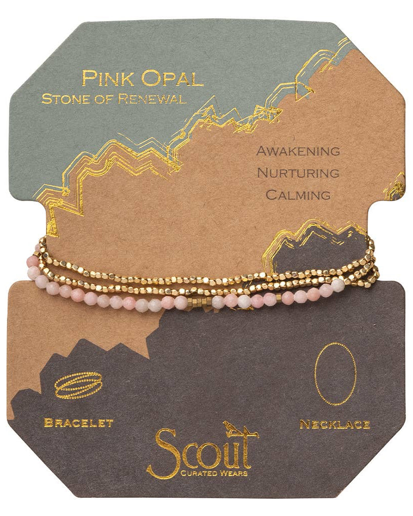 Wrap yourself in intention with our Delicate Stone Wrap in Pink Opal – the Stone of Renewal. This magical piece is designed to multitask! Wear it as a triple-wrap bracelet or a single-strand necklace for effortless versatility.