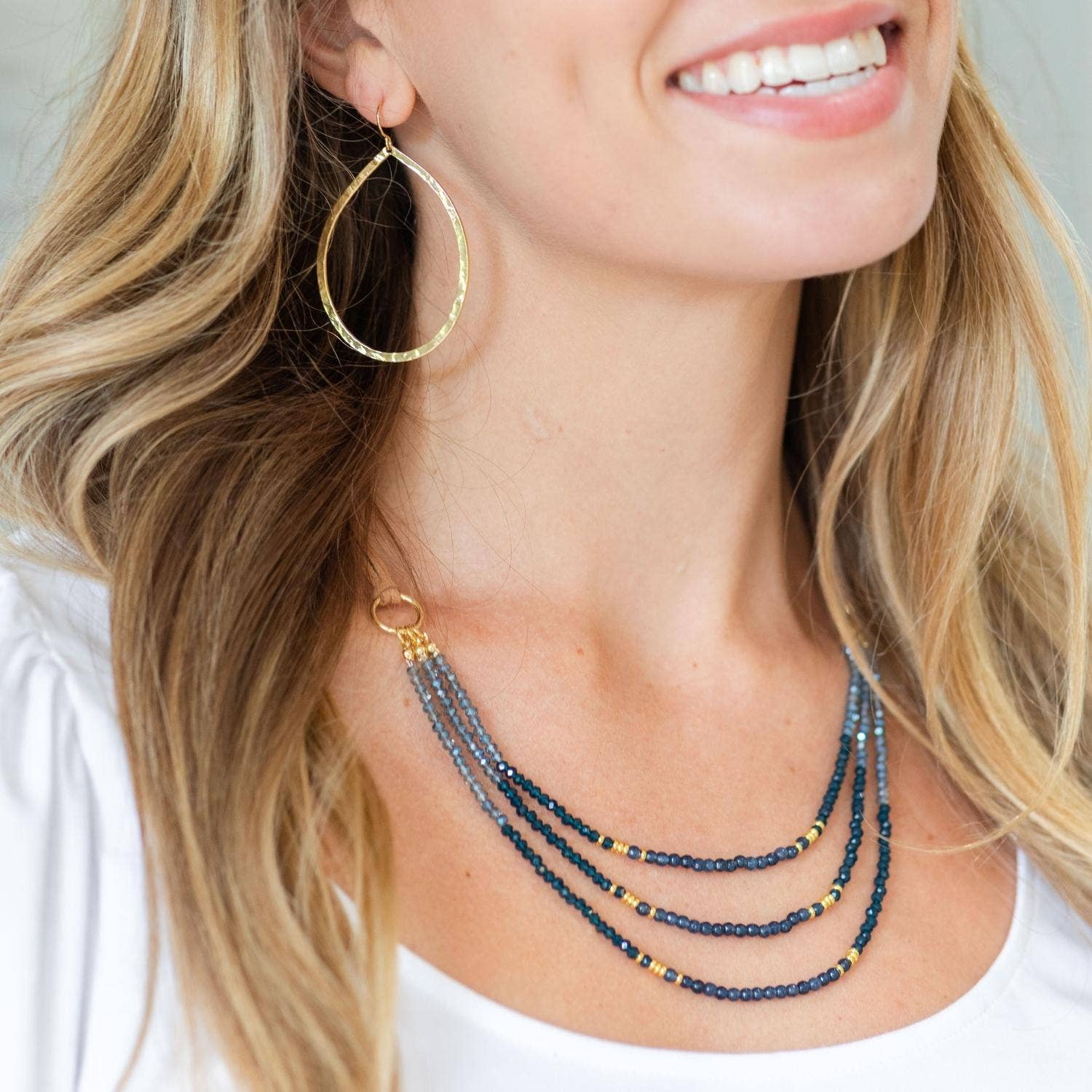 These large open teardrop earrings are that “instant polish” piece you’ll reach for when you want a look to feel finished. The lightly hammered texture catches the light in a soft, flattering way, while the open silhouette keeps them airy and wearable—bold, but never heavy.