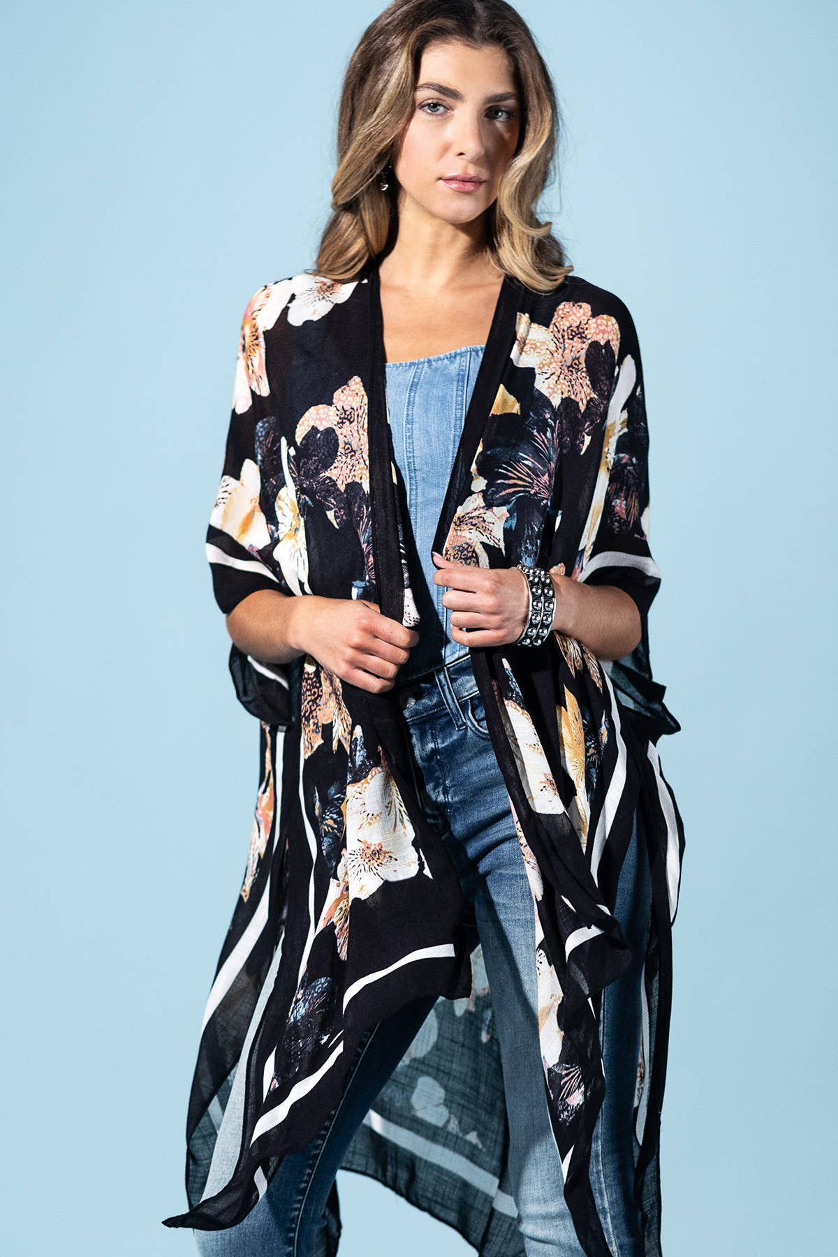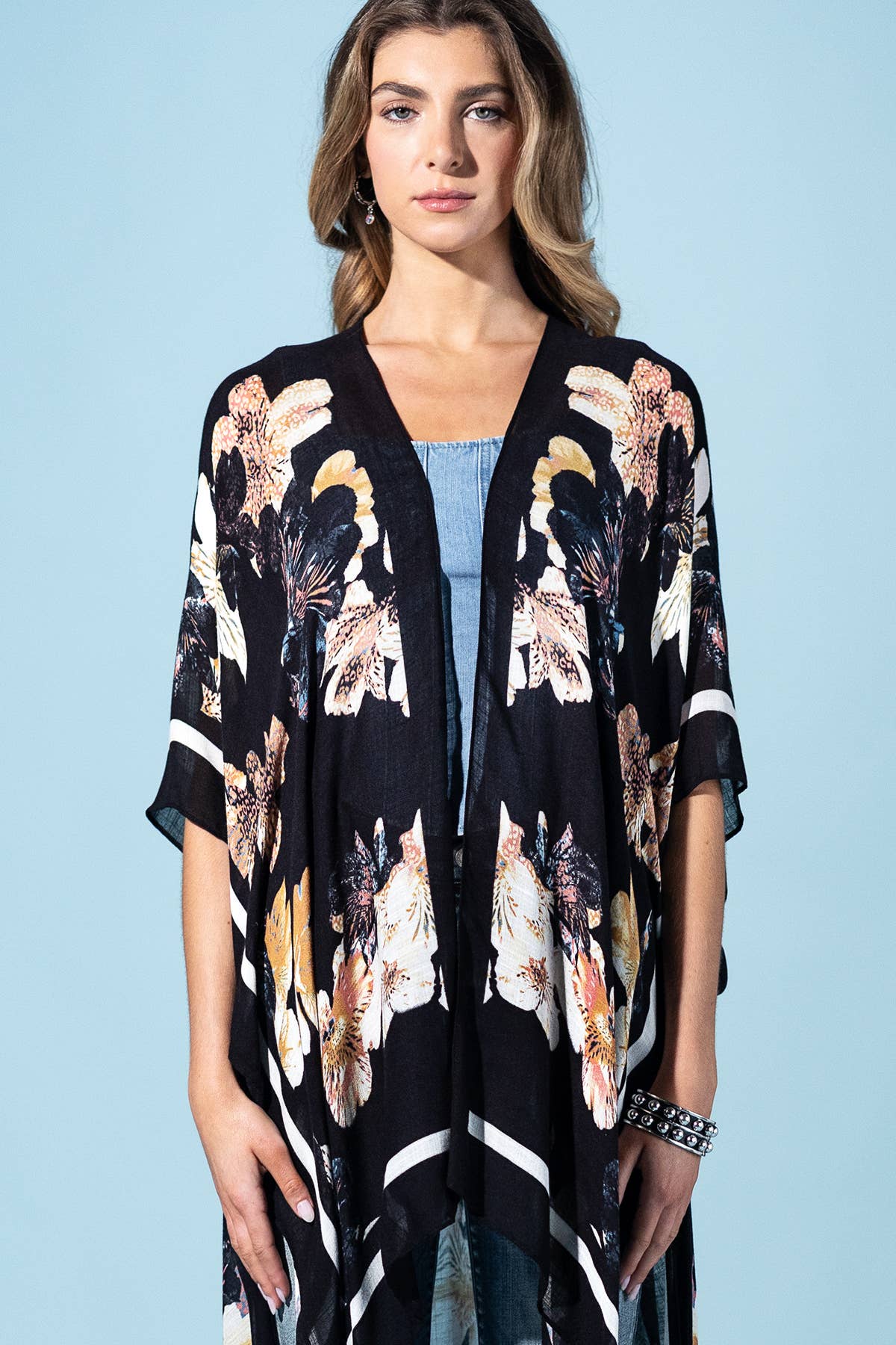 This versatile floral kimono brings effortless layering, movement, and a touch of boho elegance to your everyday wardrobe.